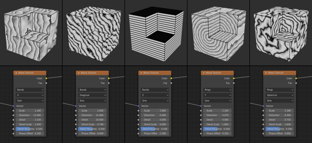 Wave textures will create rings or alternating layer of black and white. There is also a distortion factor, this allows you to create some interesting patterns.