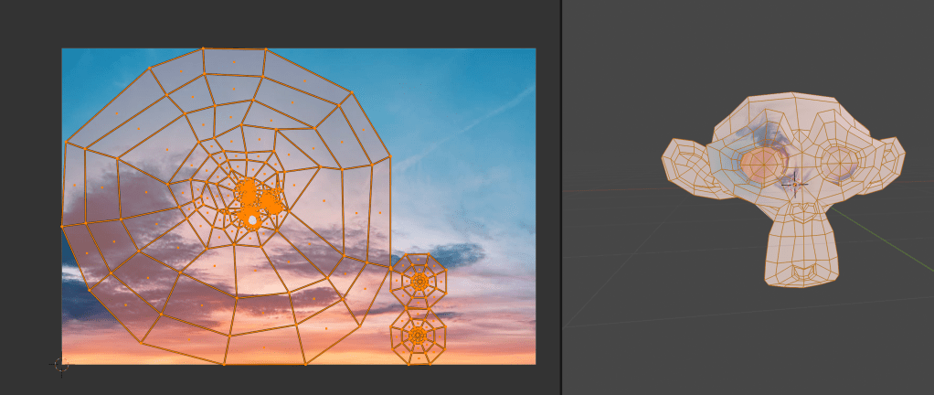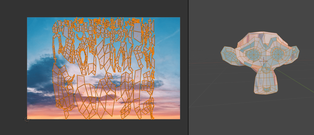 When selecting faces in the right panel (edit mode), the selected faces will show up in the left panel (UV Editor). Just like in Edit mode, artists can select all faces by hot key “a”. To transform these faces, artists can use the hot keys “g” to move, “r” to rotate, and “s” to scale. Offering better control over the appearance of an object.