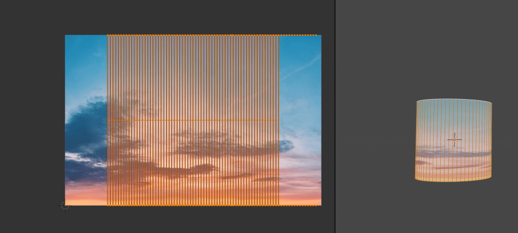 Cylinder projection projects the texture onto an object using a cylinder-shaped map. Something different about this projection is the fact that different views will map the UV differently, skewing the image if used.