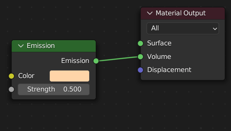 4. Remove the Principled BSDF. Replace it with an emission node and connect it to the volume output.
